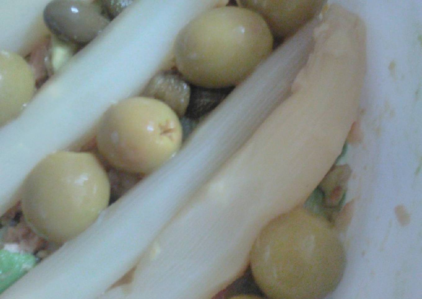 - Aliñamos con aceite, sal y vinagre y decoramos con espárragos, aceitunas y alcaparras