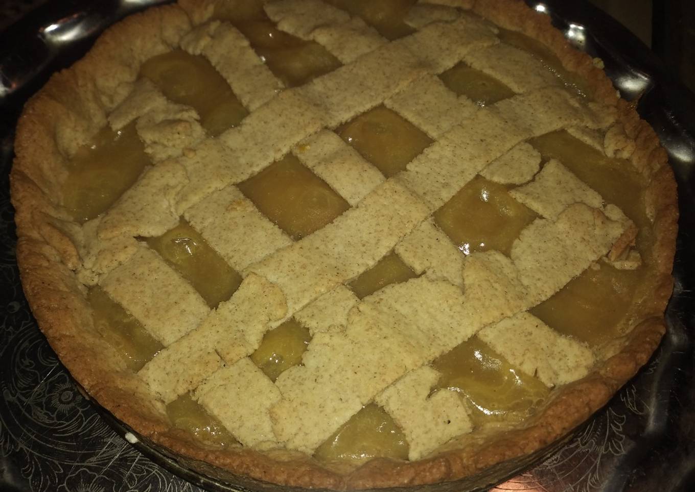 - Vamos pre calentando el horno a 180 grados y estiramos unas tiras de masa para decorar la tarta. Cocinar durante 25 a 30 minutos.(yo no la pinto con huevo para que se dore). Dejar entibiar antes de desmoldar y servir.